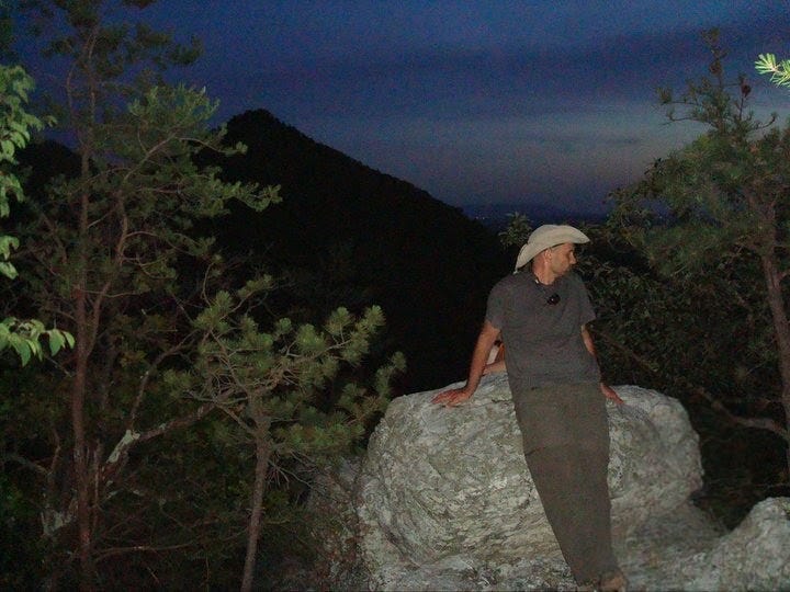 The second photo was an evening shot of me leaning against a boulder. At first glance, nothing about it seemed remarkable. But I remember the afternoon that led up to it. The guys and I were hiking in the Buffalo River Region of northwest Arkansas, in the sweltering July heat, the sun blazing directly overhead. And the name of the mountain we were ascending?